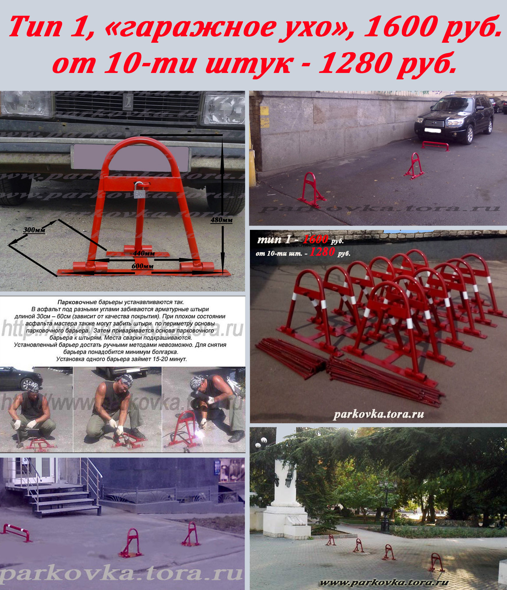 Акция! Парковочные барьеры 1600 руб. От 10-ти штук – 1280 руб. Изготовление механических парковочных барьеров и оградительных столбиков, механических шлагбаумов - для ограничения въезда на паркоместо, тротуар, территорию. Изделия выполнены из «черного» металла, мощные сварные швы, надежная конструкция. Высота парковки h=480мм, ширина b=450мм. Все парковочные барьеры сделаны из толстостенных труб (толщины стенок труб s=3.2мм), не приводящих к деформированию элементов при наезде автомобиля, а также не приведет к порезке шин (как в случаях, где «пятка» крепления к поверхности является скобой). У нас только цельные сварные конструкции (никаких болтиков и т.п.). Доставка парковочного оборудования по всей России.