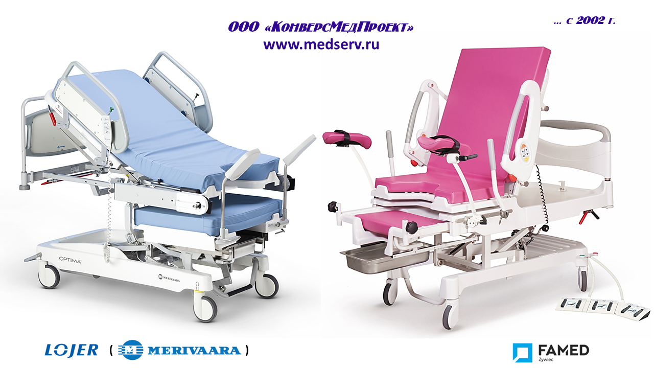 ООО «КонверсМедПроект» на правах официального дистрибьютора представляет родовые кресла-кровати одних из старейших и наиболее опытных производителей подобных изделий: Lojer (ранее - Merivaara), Финляндия и Famed Zywiec, Польша.