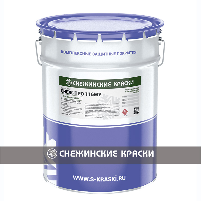 СНЕЖ-ПРО (грунтовка, эмаль, грунт-эмаль) - быстросохнущая, однокомпонентная. Антикоррозионные однокомпонентные материалы на алкидно-уретановой основе. Применяют в системах покрытий для окрашивания всех видов подвижного состава, специальной техники в области машиностроения.
