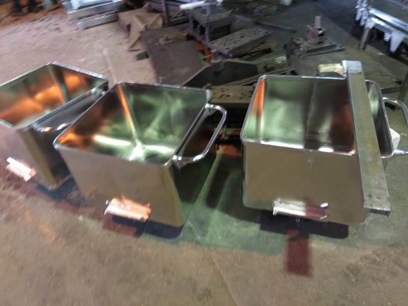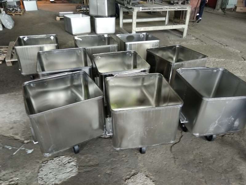 Чан-тележки / чебурашки (китаянки) с трехколесной формулой и глубоким прямоугольным бункером (чаном) для перевозки сырья, полуфабрикатов и готовых продуктов на предприятиях по производству продовольственных товаров. Числовой индекс в маркировке указывает на емкость бака. Линии стыков днища и стенок бункера имеют округлую форму, что обеспечивает тщательную очистку емкости и ее санитарную безопасность. Предназначены для транспортировки кускового мяса, фарша, полуфабрикатов, субпродуктов и т.д., посола мяса в колбасном производстве, загрузки волчков, куттеров и фаршемешалок на предприятиях мясной промышленности, а также транспортировки и временного хранения различных пищевых продуктов на предприятиях перерабатывающей промышленности. Материал-нержавеющая сталь.