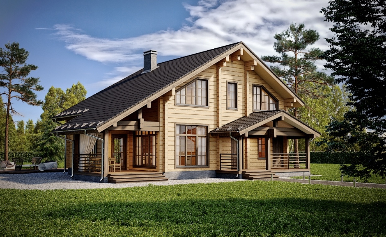 Великолепный двухэтажный дом «Артемида» можно исполнить как из клееного бруса, так и из цельного профилированного бруса. Проектом предусмотрена объединенная гостиная с кухней-столовой и выходом на террасу и 5 спален, что идеально подойдет для большой семьи.