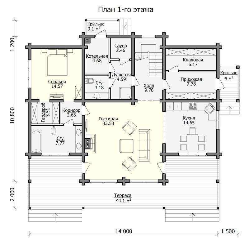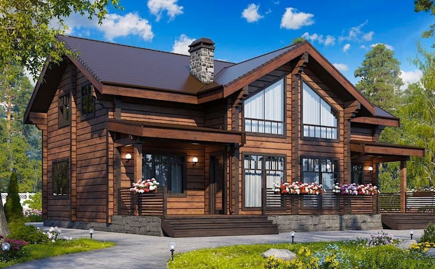 В стоимость входит: фундамент на ж/б сваях, обвязка из бруса 200х200 мм, лаги пола, стеновой комплект с монтажом из клееного бруса 160х185 мм, крыша с покрытием из металлочерепицы