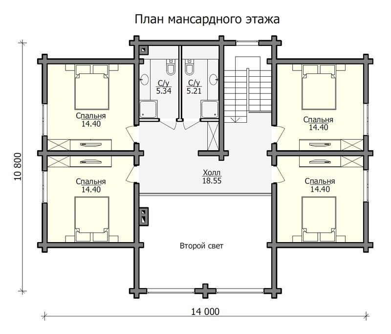 Просторный двухэтажный дом по проекту «Деметра» можно исполнить как из клееного бруса, так и из цельного профилированного бруса. Объединенные гостиная и кухня красиво дополнены эркером с панорамным остеклением и «вторым светом». На первом этаже также имеется отдельная спальная комната. Отдельно выделена зона для сауны и вспомогательных помещений для душевой и котельной. Проектом предусмотрены четыре изолированные спальные комнаты на втором этаже, а также два отдельных санузла. Двухэтажный дом по проекту отлично подойдет для большой семьи и не оставит никого равнодушным своей красотой и функциональной планировкой.