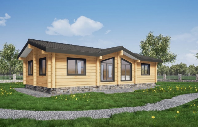Просторный одноэтажный дом с красивой архитектурой по проекту «Флора» можно исполнить как из клееного бруса, так и из цельного профилированного бруса. Проектом предусмотрены три спальные комнаты, объединенные кухня и гостиная. Вход в дом осуществляется через небольшое крыльцо и тамбур. Также имеется техническое помещение.