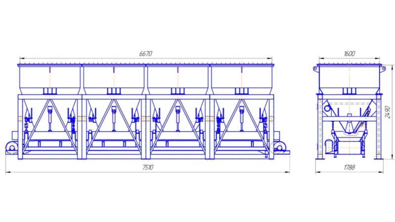 Дозирующий комплекс служит для хранения, дозирования и транспортировки инертных компонентов бетонной смеси, предназначенной для изготовления бетонных изделий.