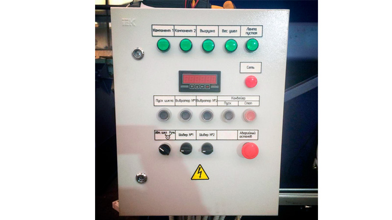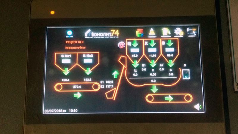 - Автоматика комплекса способна «запомнить» веса отдозированных инерных компонентов, при отключении электроэнергии или при остановке работы комплекса оператором во время цикла дозирования, что позволяет продолжить цикл не освобождая вручную ленту и скип от оставшихся инертных, контроллер определит их наличие автоматически.