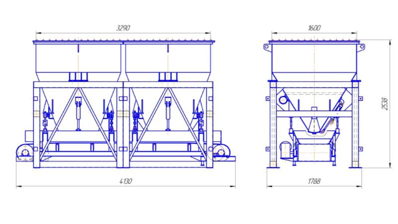 Дозирующий комплекс служит для хранения, дозирования и транспортировки инертных компонентов бетонной смеси, предназначенной для изготовления бетонных изделий.