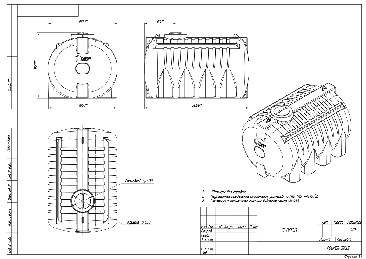 Конструкция емкости G 8000 литров 8 кубов дополнительно усилена ребрами жесткости.