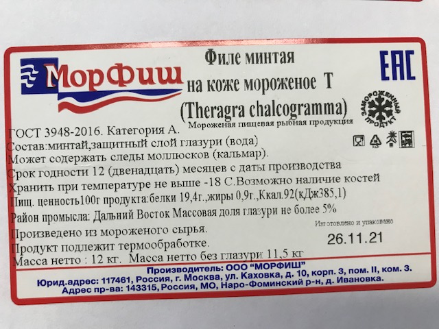 Сырье: минтай 25+