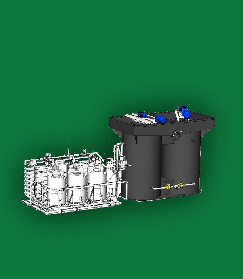Включает реагентное хозяйство для дозирования pH корректора, коагулянта, флокулянта; змеевик, обеспечивающий время для протекания химической реакции коагулянта и флокулянта; сатуратор для насыщения воздухом воды; компрессорное оборудование для подачи воздуха на сатуратор; флотатор.
