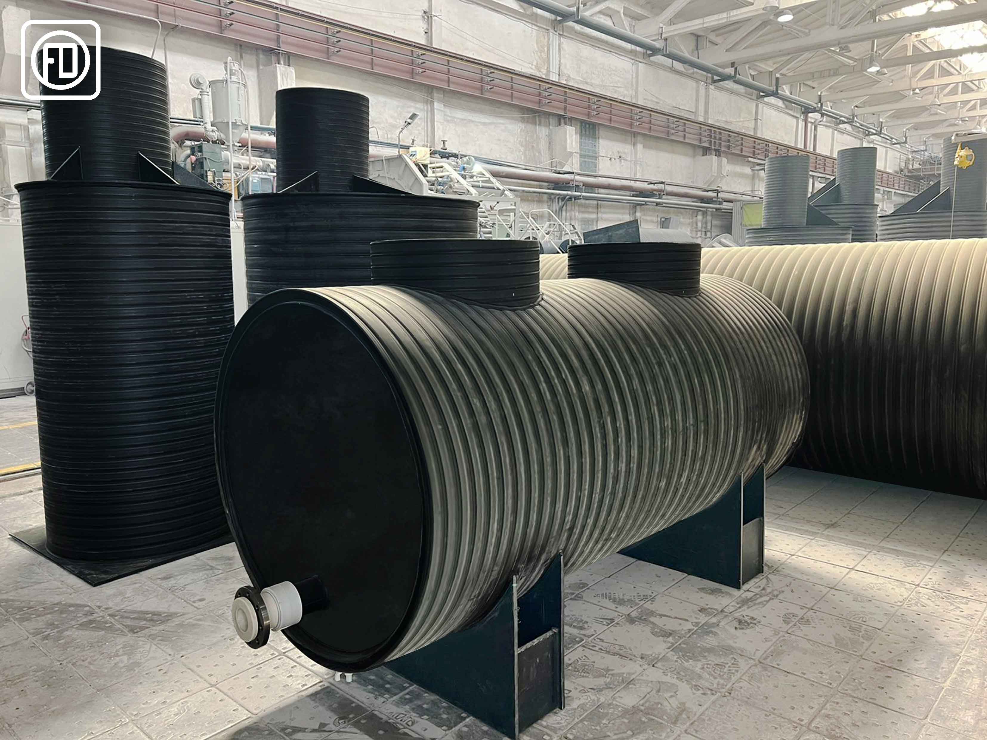 Завод производит пластиковые колодцы FD SVT: канализационные, водопроводные, кабельные, а также емкости и резервуары объемом от 5 до 125 м3. Так как все комплектующие колодцев, емкостей собственного производства, то заказы выполняются в максимально короткие сроки. Все изделия производятся только из высококачественного сырья – полиэтилена низкого давления (ПНД).