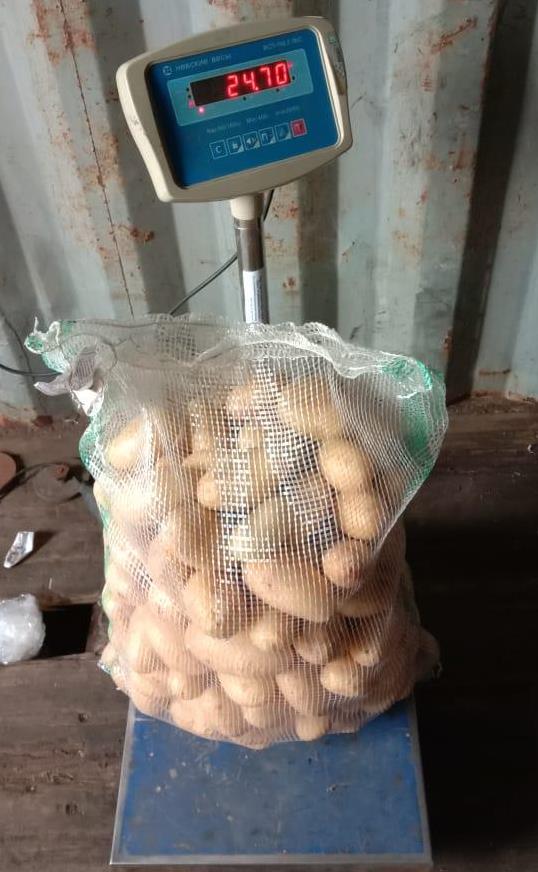 Картофель реализуется в сетчатых мешках примерно по 25 килограмм.