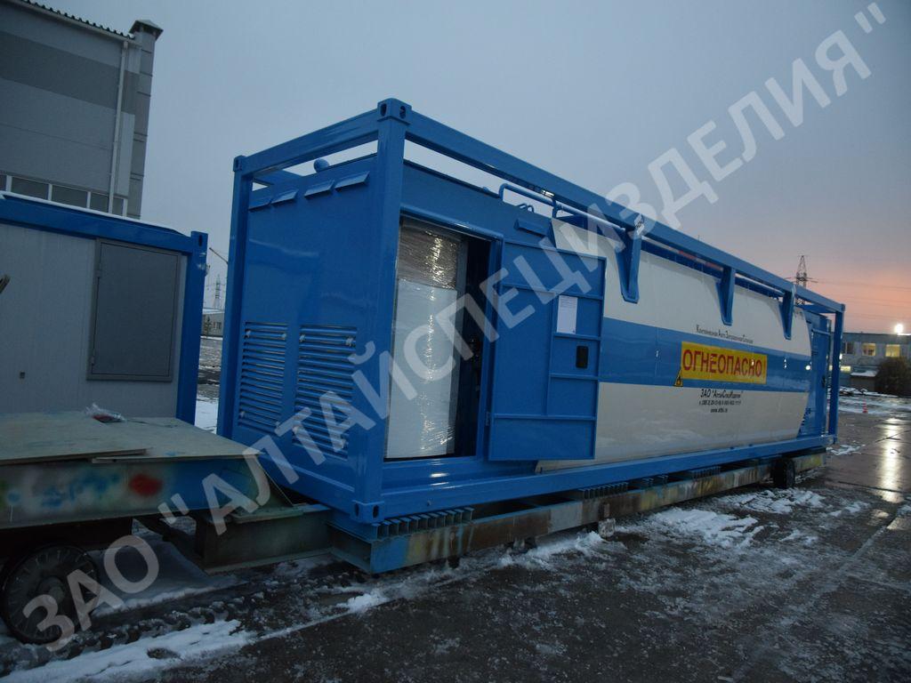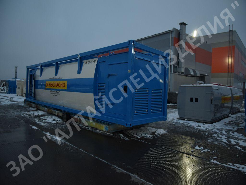 ЗАО «АлтайСпецИзделия» производит на заказ контейнерные автозаправочные станции КАЗС-5.1Д на 3 вида топлива объемом 5 кубических метров и более КАЗС такой вместимости прекрасно подходит для снабжения топливом производственного автопарка, погрузочной техники на складах или личного автотранспорта.