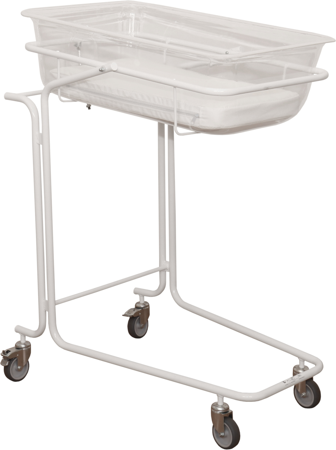 Кровать предназначена для размещения новорожденных детей в родильных домах или детских лечебных учреждениях. Конструкция кровати – разборная. Высота ложа – фиксированная, нерегулируемая. Изменение углов наклона ванны-кюветы в сторону головы и в сторону ног осуществляется бесступенчато с фиксацией зажимным винтом. Наличие положений «Тренделенбург» и «АнтиТренделенбург». Ванна-кювета выполнена из прозрачного органического стекла и оснащена карманом для именной таблички. Матрац выполнен из пенополиуретана толщиной 45 мм в чехле из медицинской клеенки. Кровать установлена на 4 колёсных опорах диаметром 75 мм, из них 2 с тормозом.