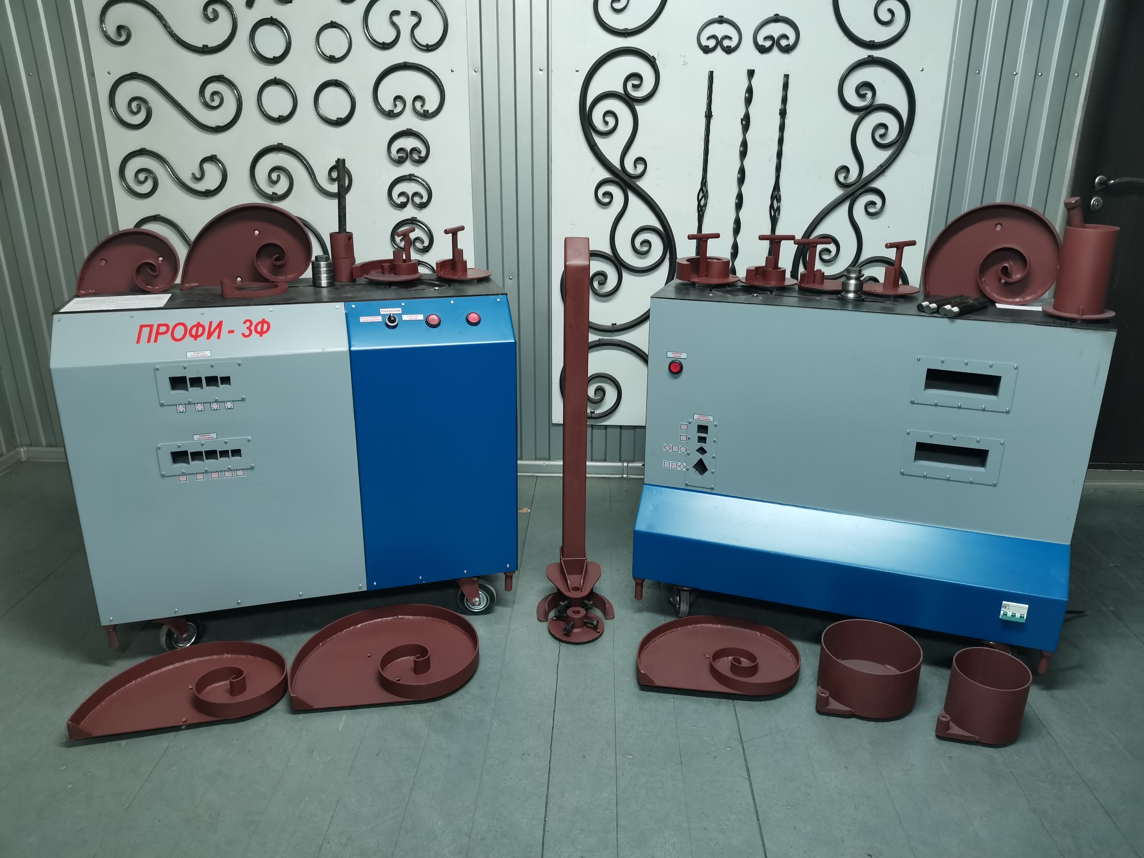Кузнечные станки «ПРОФИ-3Ф», серийно выпускает и реализует торгово-производственная компания. Наше оборудование предназначено для изготовления из профильной трубы и полнотелого металлопроката художественных изделий, методом «холодной или горячей» ковки. Профильную трубу (ПТ) сечением 25х25х1,5 мм., на оснастки к кузнечному станку «ПРОФИ-3Ф», скручивают в завитки различного размера, без складок и гофр. Еще одна отличительная особенность данного станка, в вальцах блока декоративного сдавливания, прокатывают узор: «ромбовидная фактура», на заготовках (ПТ) сечением от 15 до 30 мм. Декоративные элементы в дальнейшем и в определенной комбинации свариваются: в ограждения, ворота, решетки, козырьки, мебель и т.д.