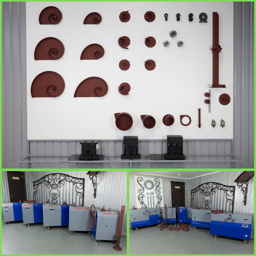 Торгово-производственная компания серийно производит и реализует лекала и оснастку к кузнечным станкам, с помощью которой изготавливают из профильной трубы и полнотелого металлопроката декоративные элементы "художественной ковки». Полученные элементы в дальнейшем и в определенной комбинации свариваются: в ограждения, ворота, решетки, козырьки, мебель и т.д.