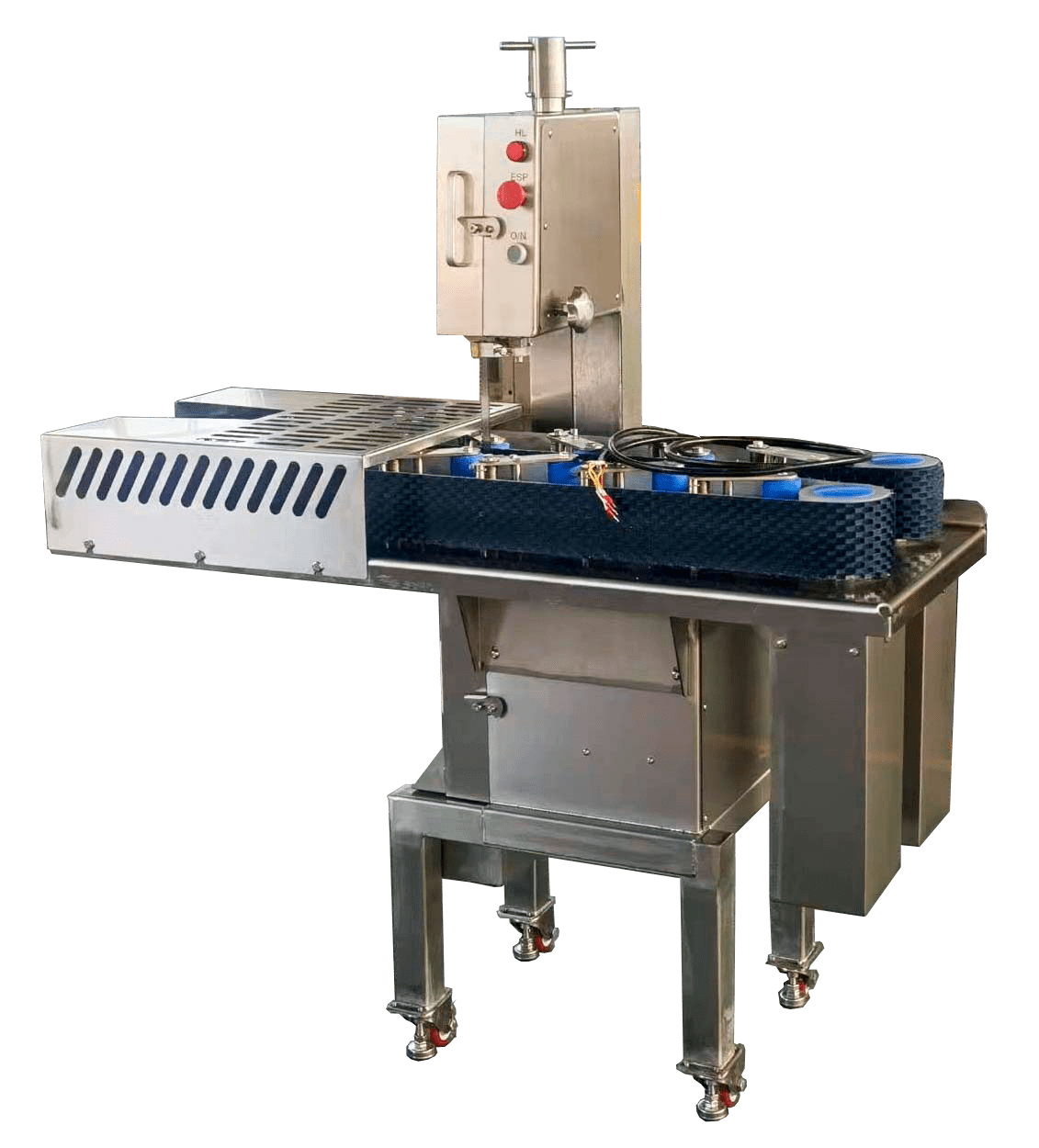 Ленточная пила Vega Msaw H300 предназначена для быстрой, точной и безопасной нарезки свиных ног напополам. Нарезка исключает дробление костей на осколки. Ленточная пила позволяет обрабатывать исходный продукт, затрачивая на это минимум времени.