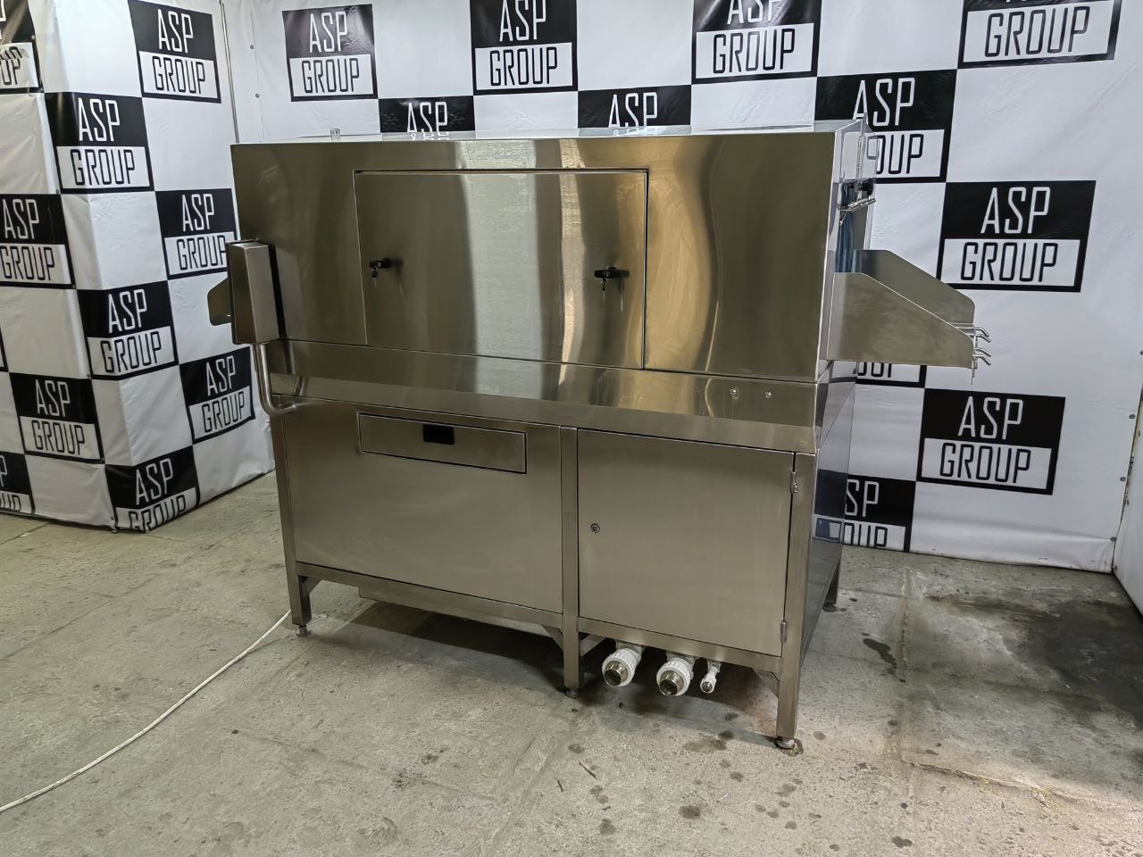 Моечная машина ASP-MMOT-300 предназначена для эффективной мойки многооборотной технологической пластмассовой тары (ящиков) различных габаритных размеров посредством моющего раствора, подающегося под высоким давлением через форсунки подведенные к обрабатываемой поверхности.