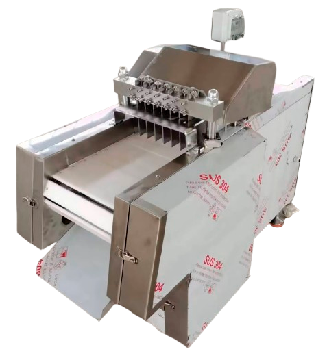Многофункциональная машина для нарезки мяса и овощей кубиками с транспортной лентой Vega Meat Dicer H500 предназначена для нарезки таких продуктов, как птица (курица, утка), кролик, свинина, говядина, замороженное или вареное мясо, замороженная рыба, может нарезать куриные окорочка и небольшие кости.