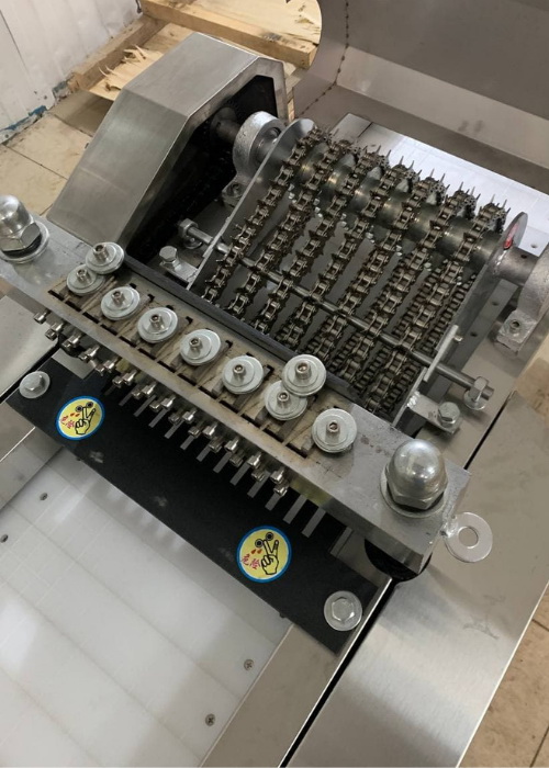 Компактность, бесперебойное функционирование, легкость и простота эксплуатации, безопасность и надежность – отличные характеристики данного оборудования. Машина проста в управлении, мощная, высокопроизводительная, имеет защитную конструкцию, благодаря которой производственный процесс становится более безопасным. По своей сути машина имитирует ручную нарезку, способную нарезать замороженное мясо, курицу и рыбу с костями.