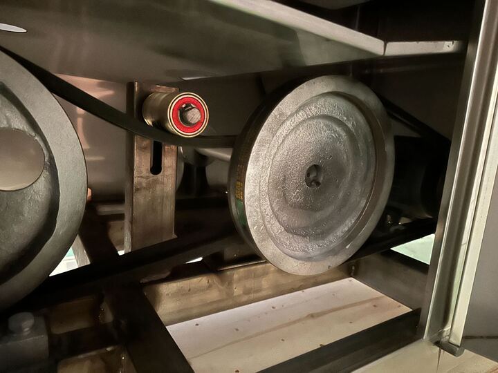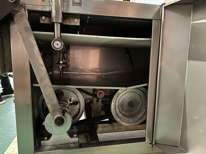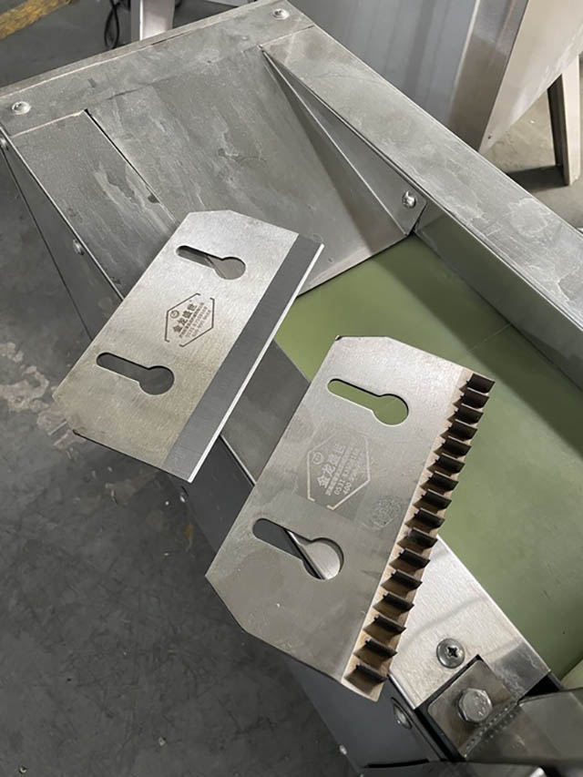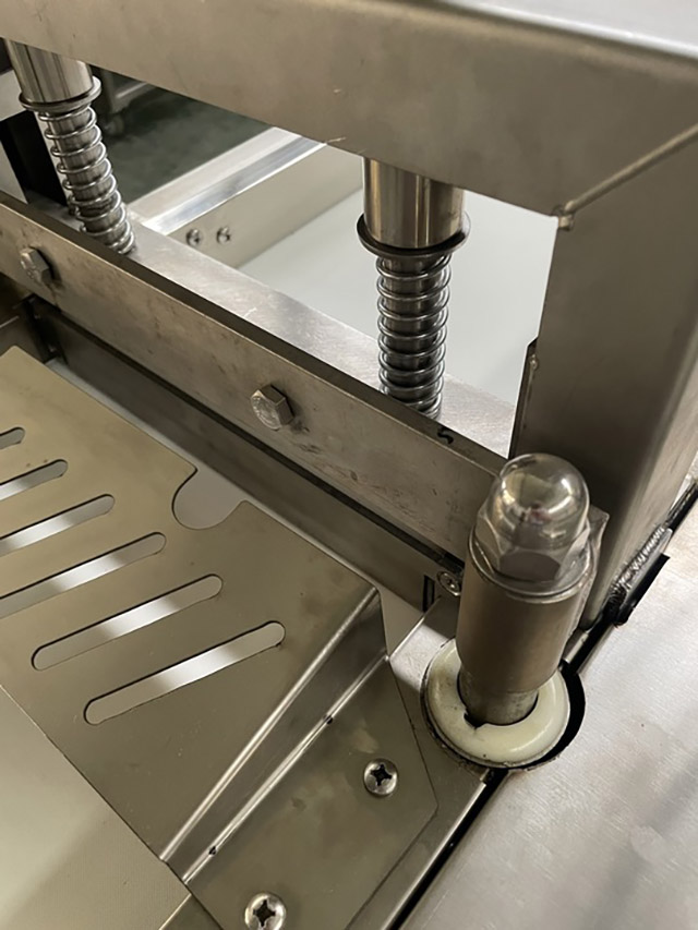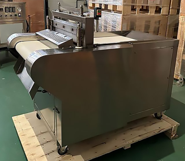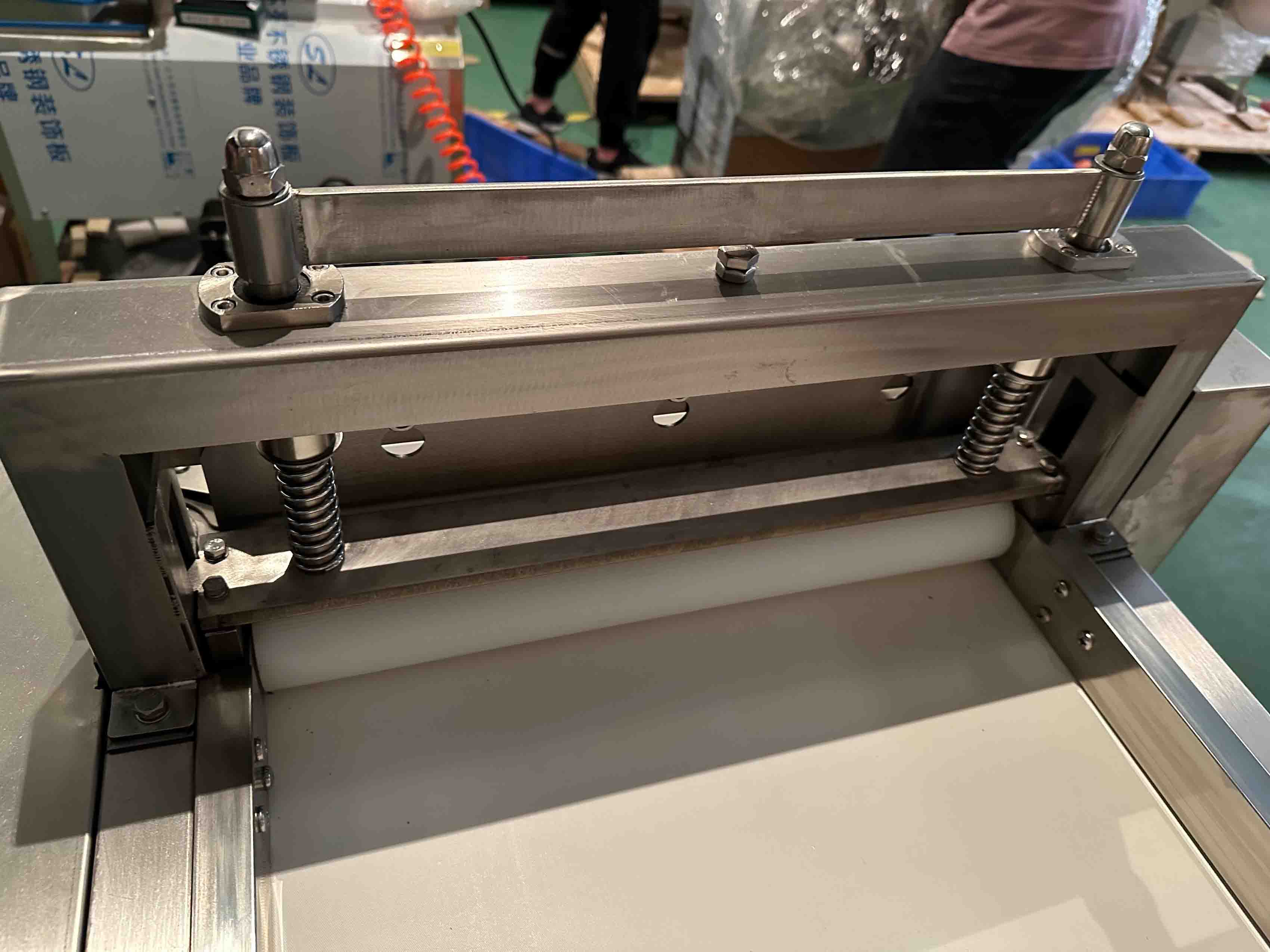 - Специальный ролик перед режущим ножом прижимает продукт к ленте, тем самым фиксируя его и предотвращая налипание на нож.