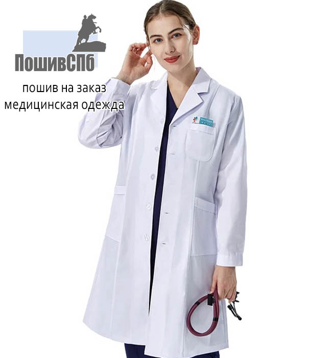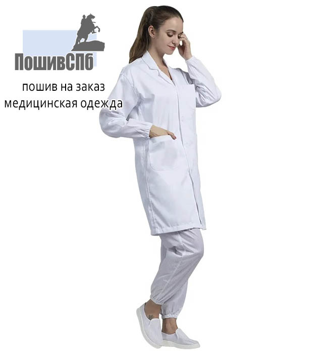 - Медицинский халат: легкая верхняя одежда белого цвета, надеваемая врачами и медсестрами поверх повседневной одежды.