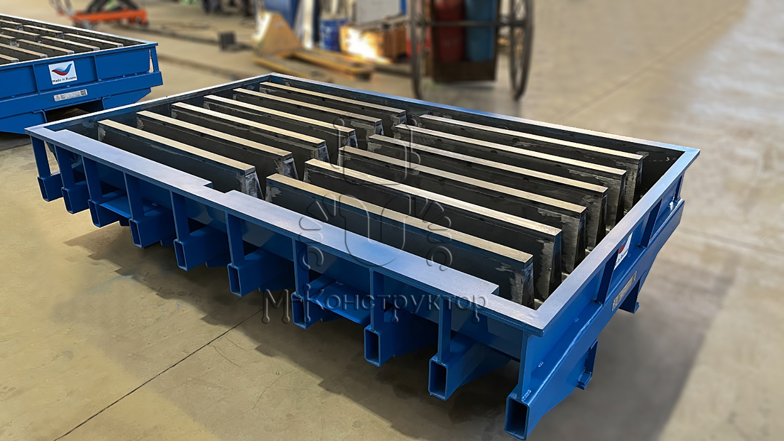 Металлоформы завода «М-Конструктор» для изготовления щелевых полов производятся разных типоразмеров и назначений с шириной щелей от 10 до 80 мм. Могут быть одноместные и многоместные; оборудованные системой вибрации с использованием металлических/пластиковых проемообразователей (на виброраме); под литье жестким силовым бетоном или автоматизированную линию для производства из полусухого бетона.