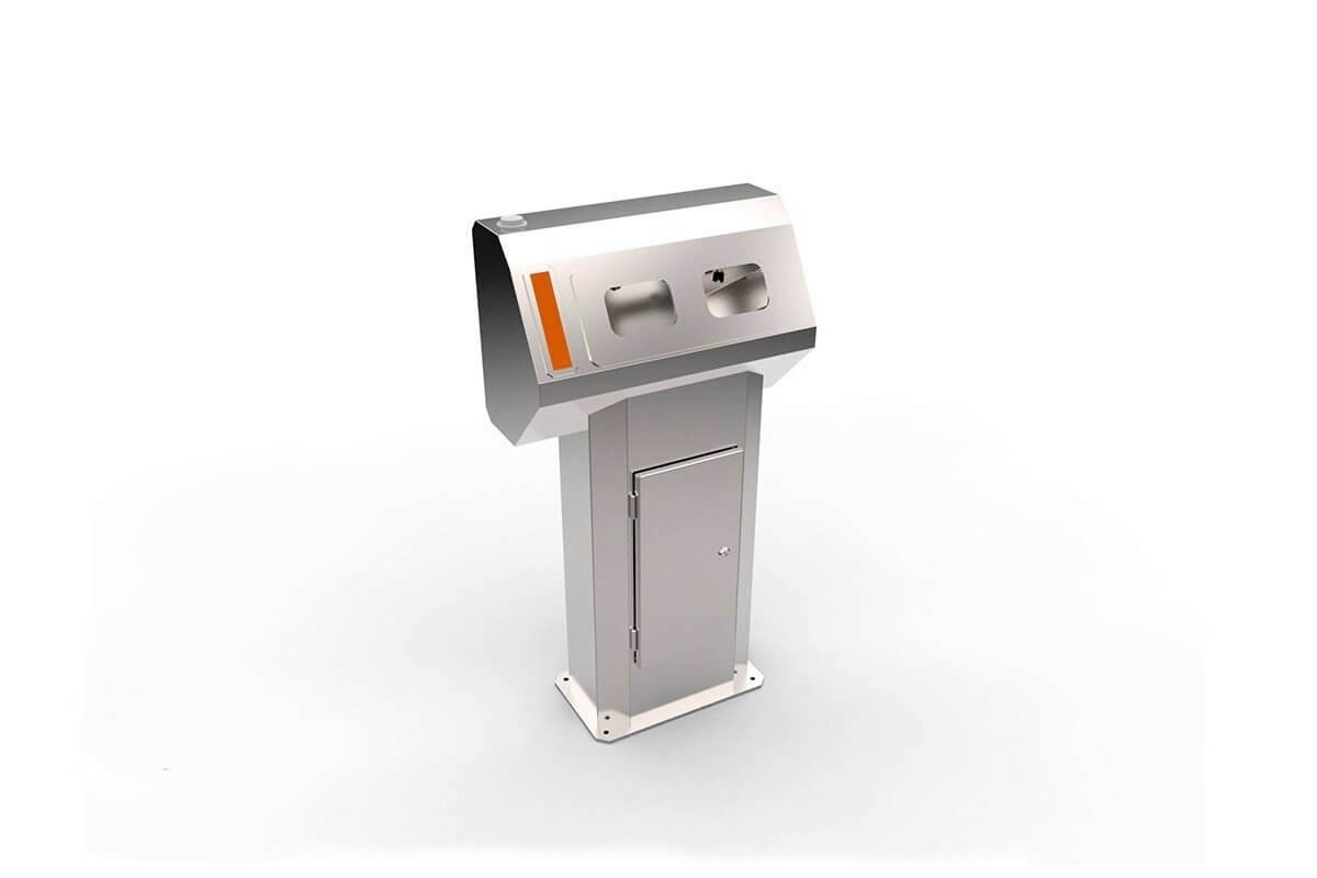 Станция-дезинфектор ASP-H-01 состоит из единственного модуля модуля дезинфекции рук. Подача обеззараживающего раствора включается бесконтактно при помещении рук в зону действия датчиков внутри ниш в дезинфицирующей камере. Разбрызгивание дезинфицирующего средства осуществляется при помощи электрического насоса четырьмя форсунками одновременно с верхней и нижней сторон рук. Это ускоряет обработку.