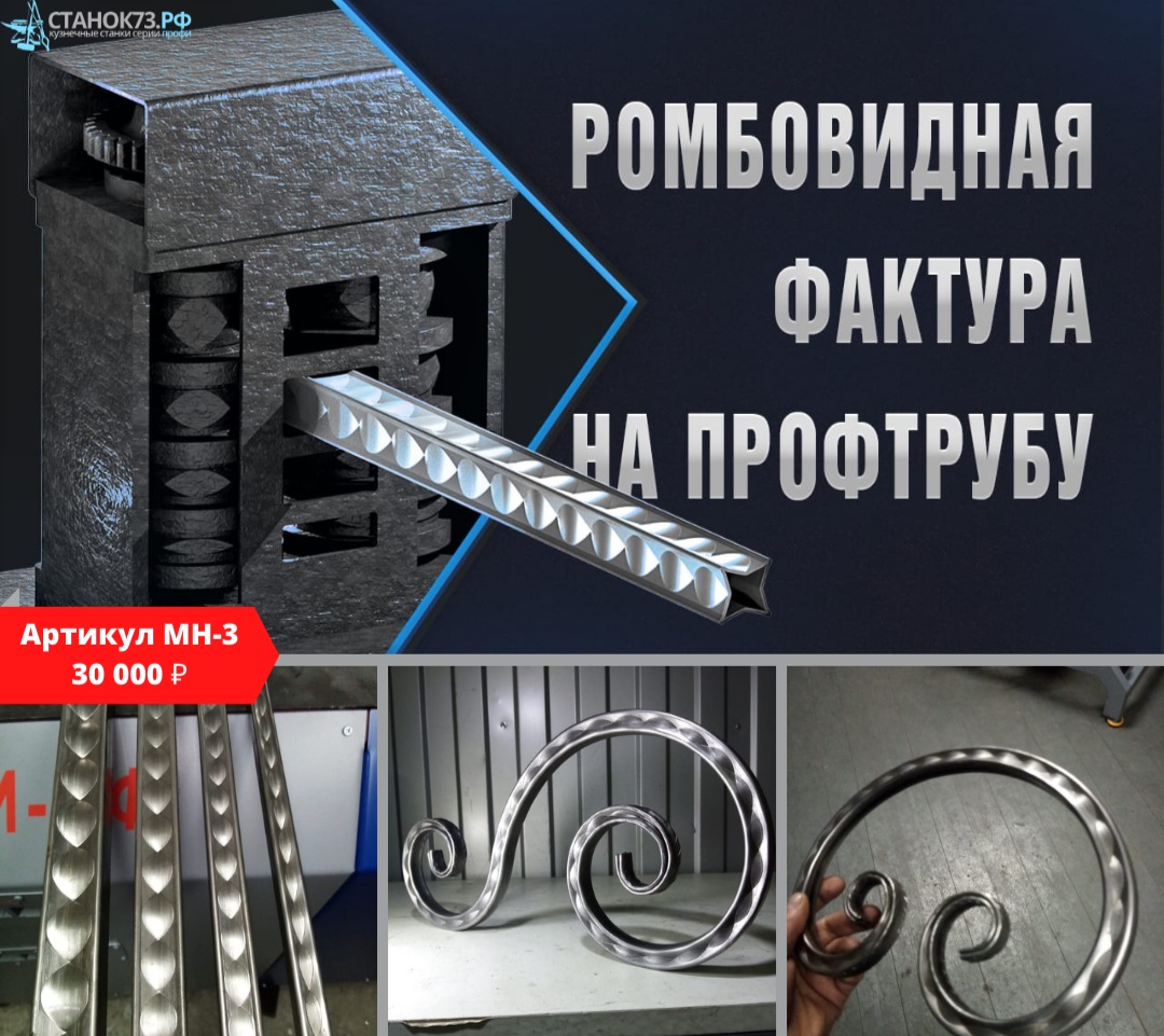 Торгово-производственная компания реализует навесные модули (артикул МН-1, МН-3 и МН-4), для раскатки окончаний «гусиная лапа» из полнотелого металла на «горячую», для проката - «хомутная полоса», нанесения фактуры «ромбовидный узор» на профильную трубу различного сечения. Стоимость оснастки от 18000 до 30000 рублей.