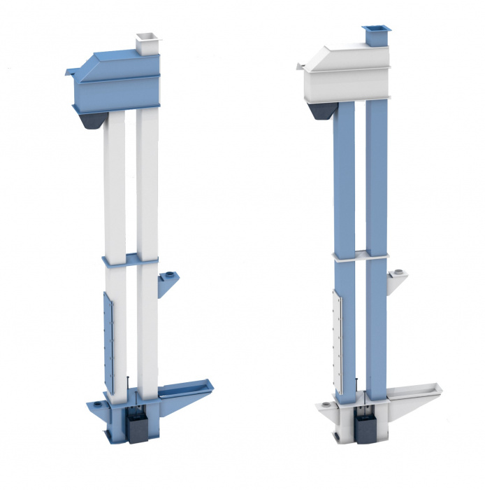 Нории предназначены для вертикального транспортирования опила, гранул и других сыпучих продуктов. Используются как транспортное средство на пеллетных, мукомольных, комбикормовых и хлебоприемных предприятиях, элеваторах, зерноскладах, портах, а также любых других предприятиях перерабатывающих отраслей. Описание рабочего процесса: Сырье поступает в башмак нории через загрузочный патрубок. С помощью мотор-редуктора получает вращение приводной барабан и приводит в движение бесконечную ленту с закрепленными на ней ковшами. Проходя вокруг барабана башмака, ковши загружаются и поднимаются к головке нории, где под действием центробежной силы перемещаемый продукт выбрасывается в патрубок выгрузки. Тип привода — мотор-редуктор; По желанию заказчика комплектуется датчиками УЗКС; Возможность изготовления металлических ковшей по спецзаказу