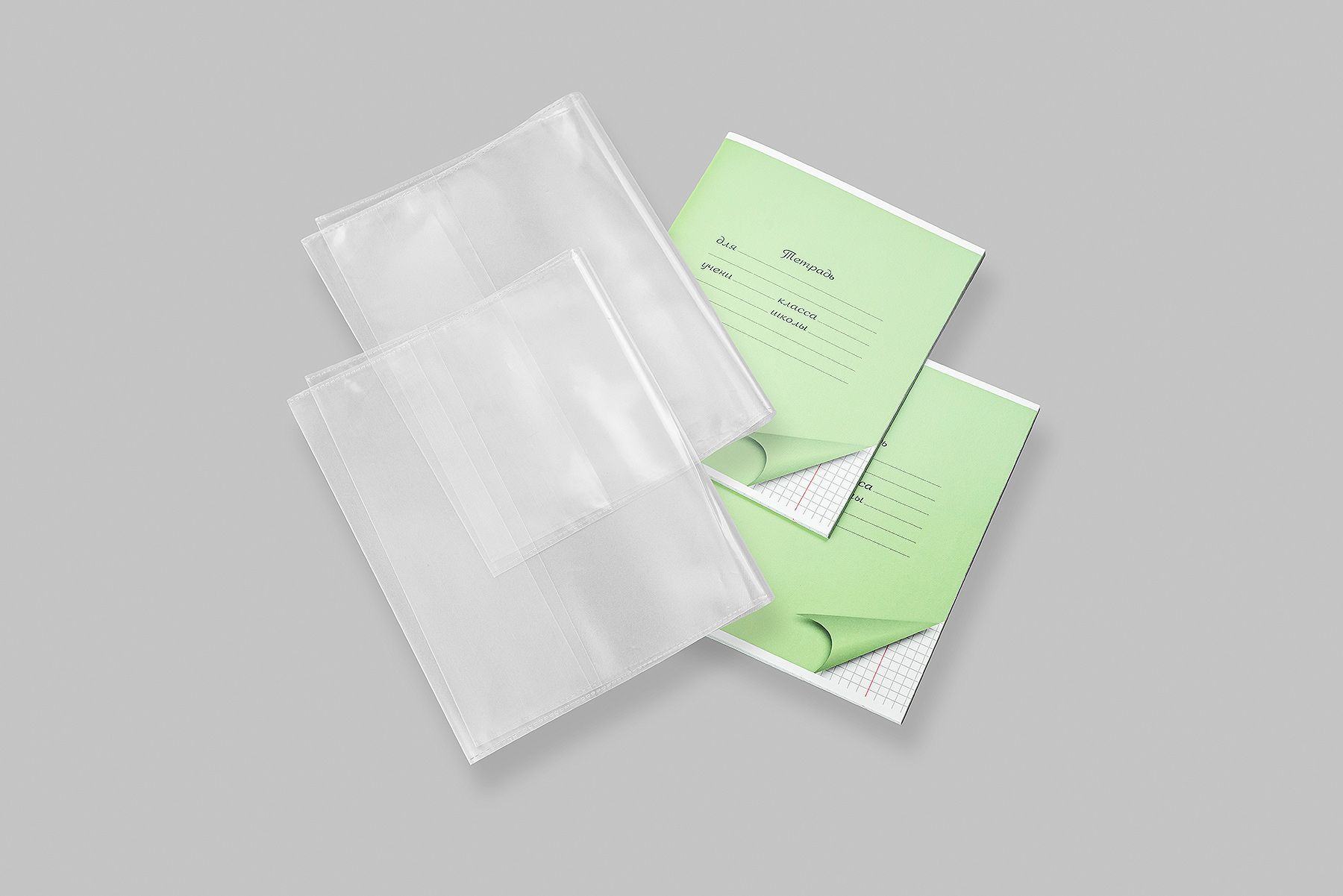 Производим и реализуем прозрачные полипропиленовые обложки для тетрадей. Размер 210*345 мм, толщина пленки 80 мкм. Минимальный тираж - 10 тыс.шт.