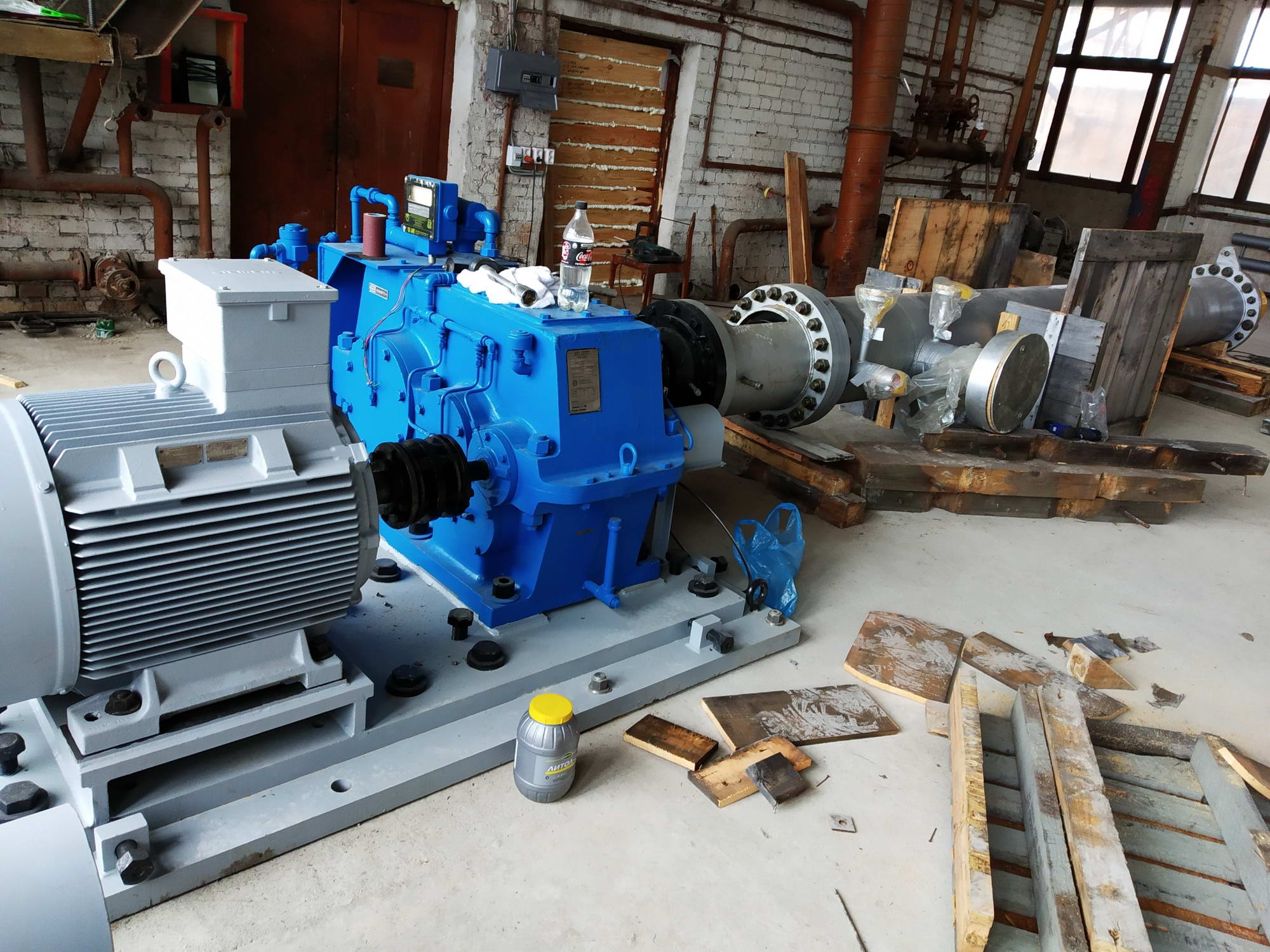 Одношнековый дегазирующий экструдер CFE-699-A-04 для полимеров производства KELLER (США) и KOBE STEEL (Япония) по лицензии DUPONT. Экструдер имеет следующие параметры: Габаритные размеры экструдера с учетом редуктора и двигателя - длина 12 метров, ширина -2,5 метра, высота -1,5 метра, общий диаметр корпуса с нагревательно-охлаждающей рубашкой - 950 мм, диаметр винта -600 мм, длина винта -7800 мм. Средняя скорость шнека составляет 22-25 об / мин. Общий вес экструдера без запасных частей составляет 40 тонн. Рабочее давление в корпусе - до 300 бар, рабочая температура нагрева расплава - до 300 градусов. Кожух экструдера нагревается высокотемпературным маслом, подаваемым в него.