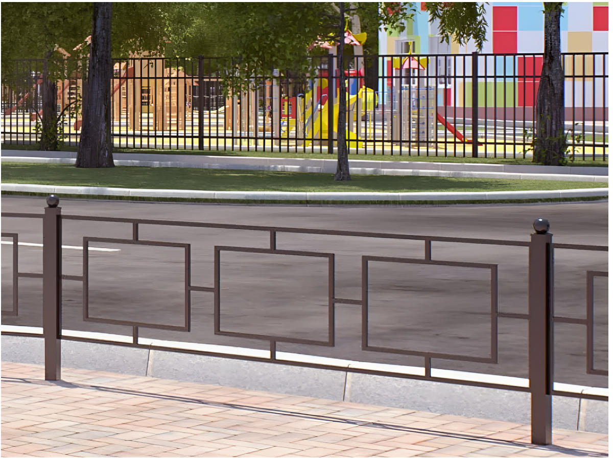 Пешеходное металлическое ограждение AB-5152 — практичное и надёжное решение для организации безопасного движения и разграничения зон. Секция длиной 2 м и высотой 1 м выполнена из прочного каркаса с трубами 40×40 мм и дополнительными элементами 30×30 мм, обеспечивая устойчивость и жёсткость конструкции.