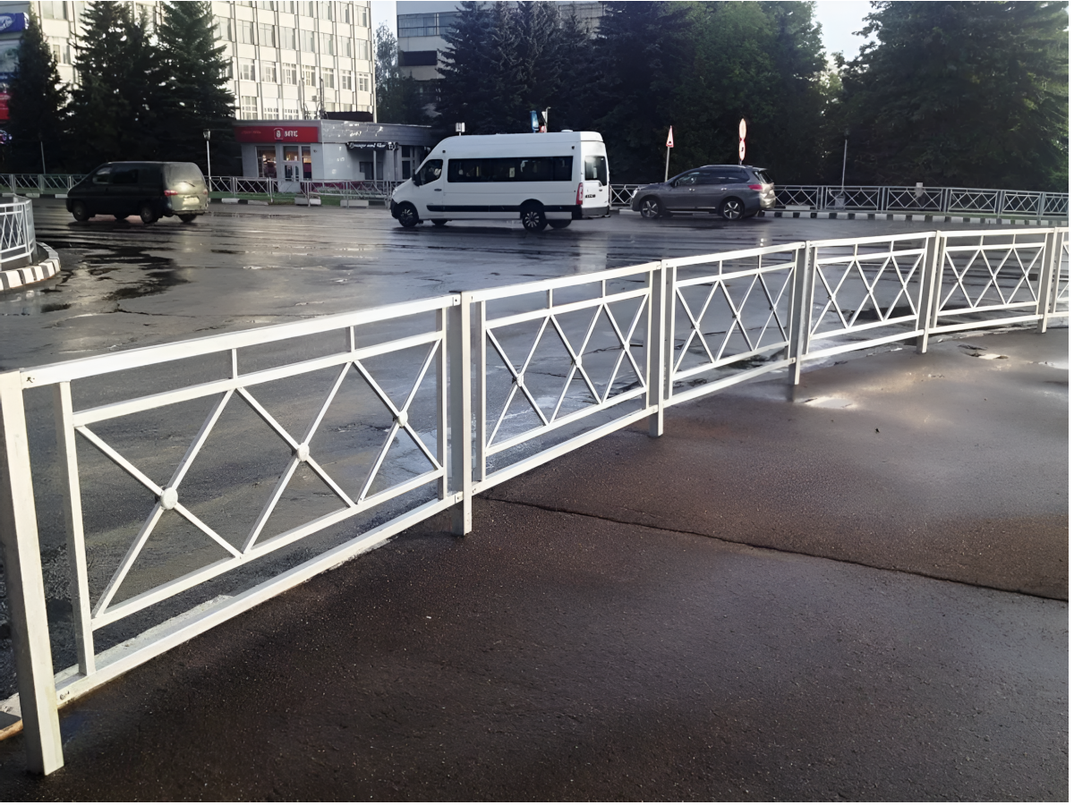 Пешеходное ограждение AB-5157 — надёжное и функциональное решение для организации безопасного движения. Конструкция выполнена из стальных профильных труб 40×40 мм и 30×30 мм с полимерно-порошковым покрытием, что обеспечивает долговечность и устойчивость к коррозии.