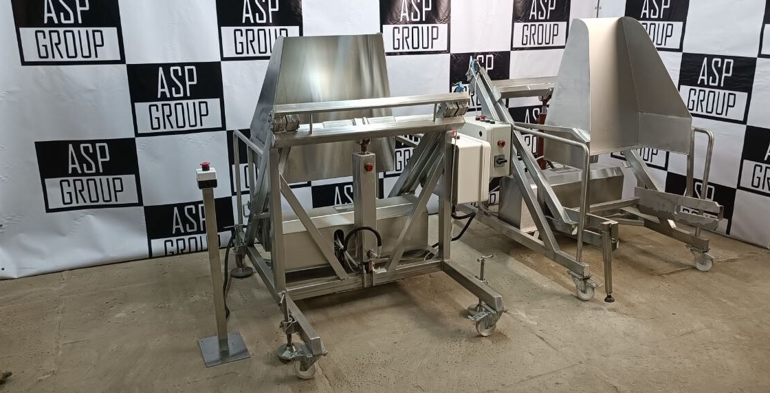 Конструкция опрокидывателя выполнена из нержавеющей стали АИСИ 304 хорошего качества. Установлена гидравлика производства Болгария.