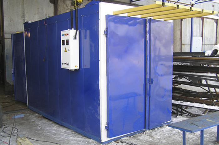 Камера полимеризации предназначена для полимеризации порошковых композиций, нанесенных на различные изделия, и представляет собой сборную конструкцию, состоящую из сэндвич панелей.