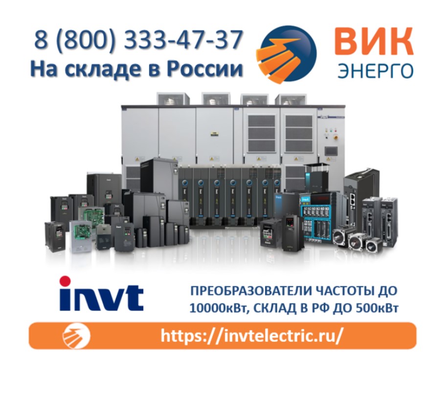 ООО «ВИК-Энерго» поддерживает постоянное наличие на складе в России самых востребованных моделей частотных преобразователей INVT, поставляет различные низковольтные, средневольтные и специализированные преобразователи частоты мощностью от 0,2 кВт до 10 МВт.