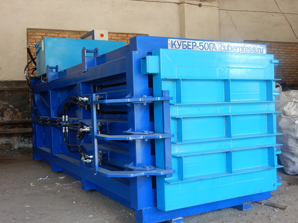 Кубер-50Г это горизонтальный пресс с ручной обвязкой. Он предназначен для прессования пластиковых бутылок, канистр, обрезков поролона, макулатуры (бумага, картон), полимерной плёнки, алюминиевых и жестяных банок, ветоши, текстиля, а также прочего бытового мусора (ТБО, ТКО). Кубер-50Г отлично подходит для больших производств, заводов, складских комплексов, гипермаркетов, полигонов ТБО и для профессиональных заготовителей вторичных отходов, имеющих большие объемы сырья. Данная модель адаптирована на длительную эксплуатацию в низкотемпературных и агрессивных условиях. Практика эксплуатации показывает, что это высокопроизводительный и надежный горизонтальный пресс, не требующее особого обслуживания и специальных помещений. Рабочий цикл составляет 28 сек. Вес и габариты готовой кипы обеспечивают максимальное использование загружаемых площадей автомобильного и железнодорожного транспорта. В зависимости от модификации, данный пресс может работать как в ручном, так и в полуавтоматическом режиме. Пресс может доукомплектовываться конвейером и прокалывателем пластиковой тары.
