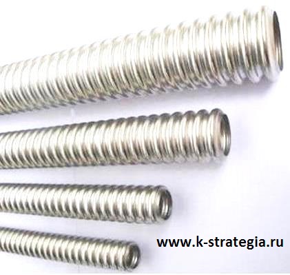 Компания ООО "Комцентр Стратегия" производит нержавеющие гофрированные трубы сифонного типа проходным диаметром 12 мм, 15 мм, 18 мм, 20 мм, 25 мм из коррозионно-стойкой ленты AISI-304 толщиной от 0,25 мм до 0,4 мм.