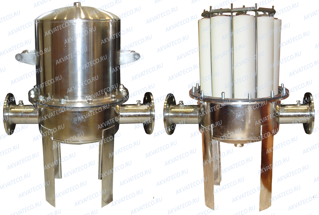 Корпус фильтра изготовлен из нержавеющей стали, в корпусе установлены 10 фильтроэлементов из полипропилена типа ФЭП.