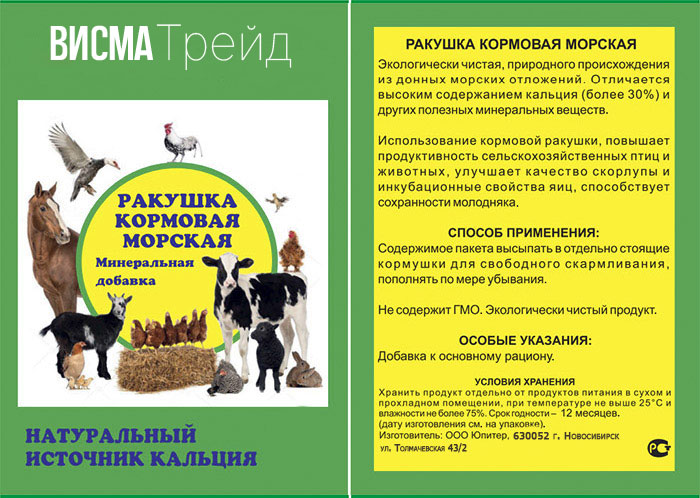 Использование кормовой ракушки, как морской, так и речной, повышает продуктивность сельскохозяйственных птиц и животных, улучшает качество скорлупы и инкубационные свойства яиц, способствует сохранности молодняка.