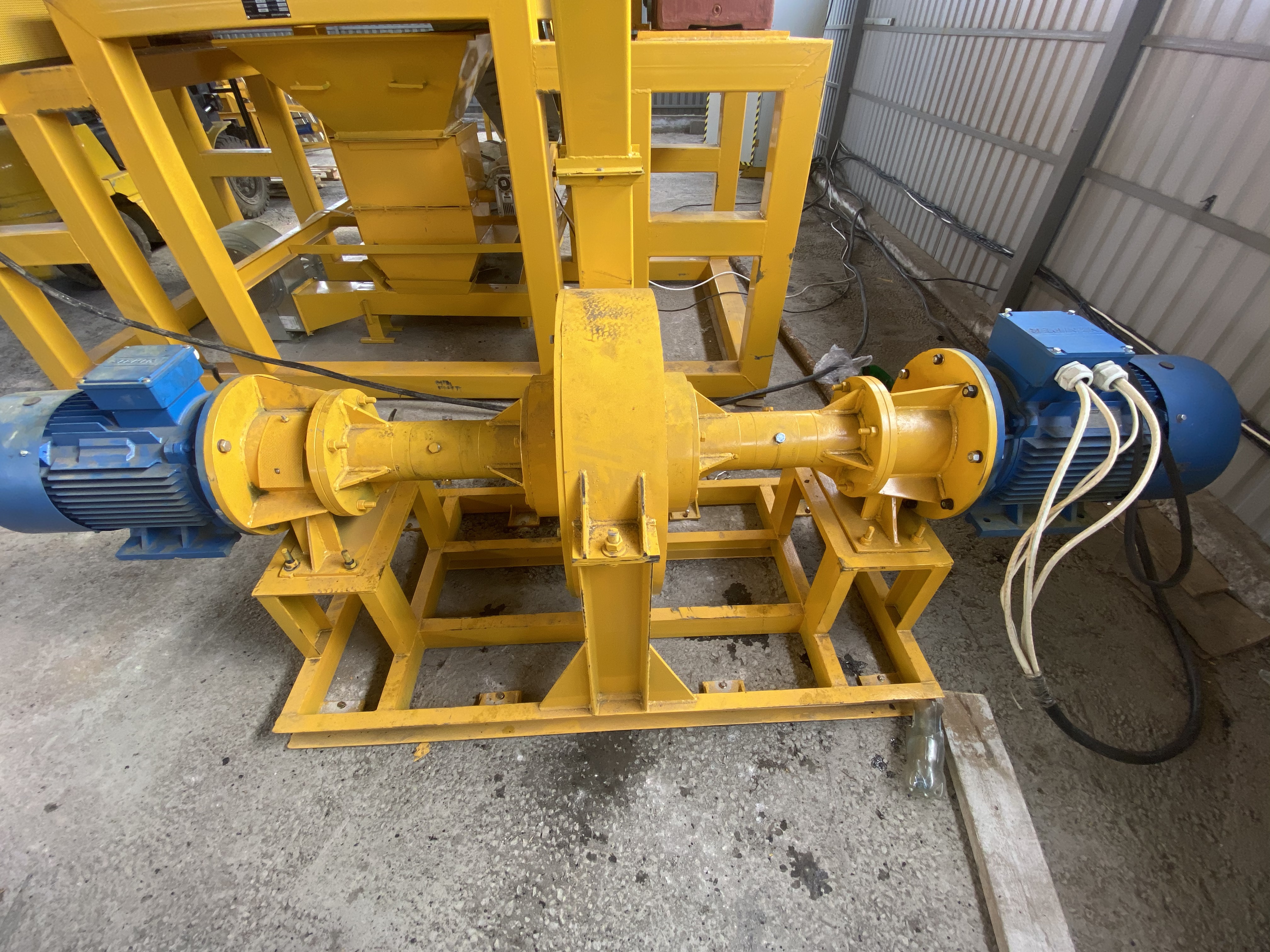 Внутренний ротор вращается со скоростью 1500об/мин. Внешний роток вращается со скоростью 3000об/мин. Ротора вращаются на встречу друг другу. В следствии вращения внешнего и внутреннего ротора происходит измельчение резиновой чипсы в резиновую крошку.