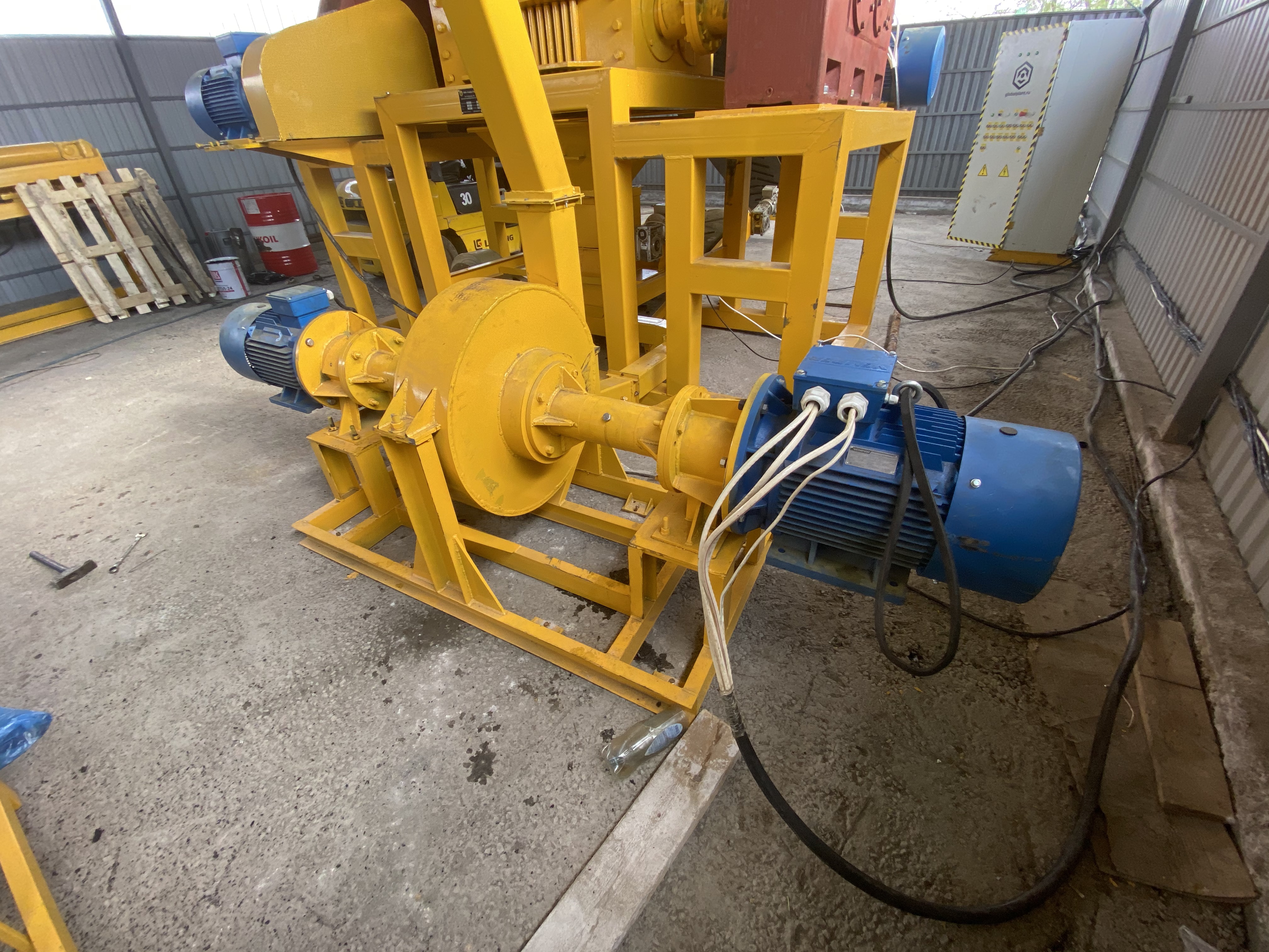 Роторная дробилка для измельчения резиновых частиц 50х50мм в гранулированную резиновую крошку размерами от 0.1мм до 5мм.