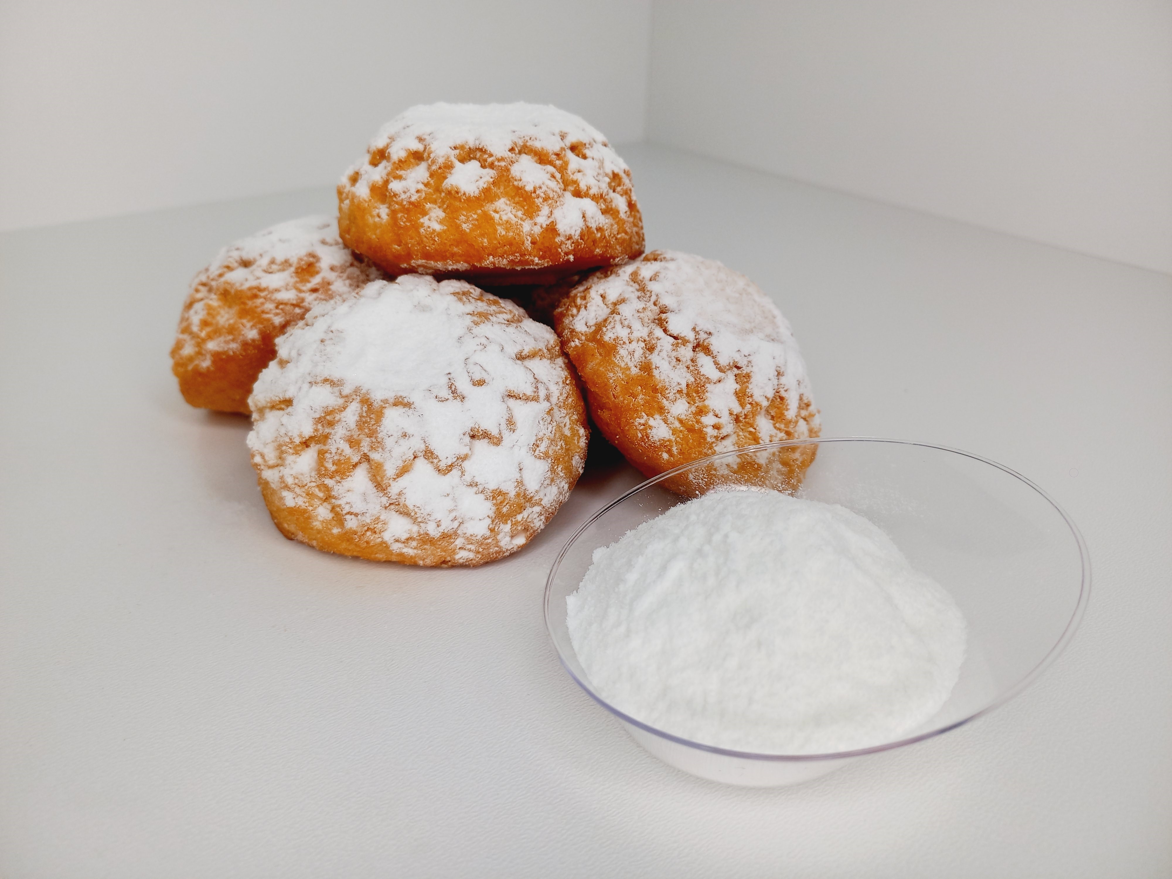 Полученная благодаря особой технологии производства, эта пудра не впитывает жир и влагу из кондитерского изделия, а, следовательно, долгое время не теряет товарного вида. Может долго храниться в мешках, не слеживаясь.