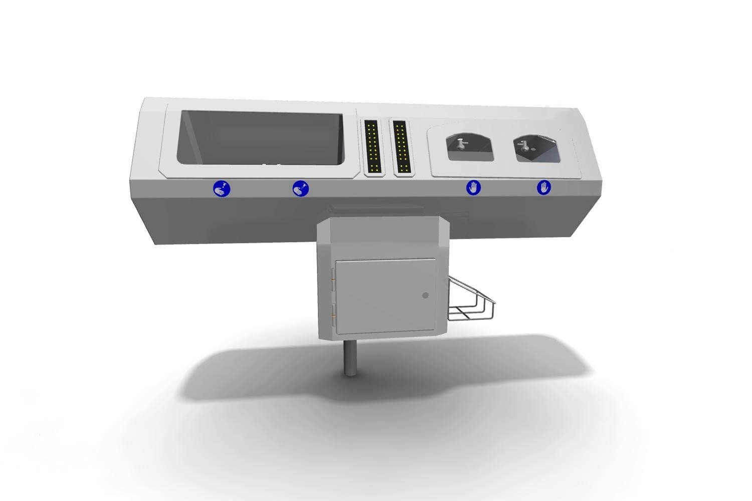 Состоит из модуля мойки рук и модуля дезинфекции рук.