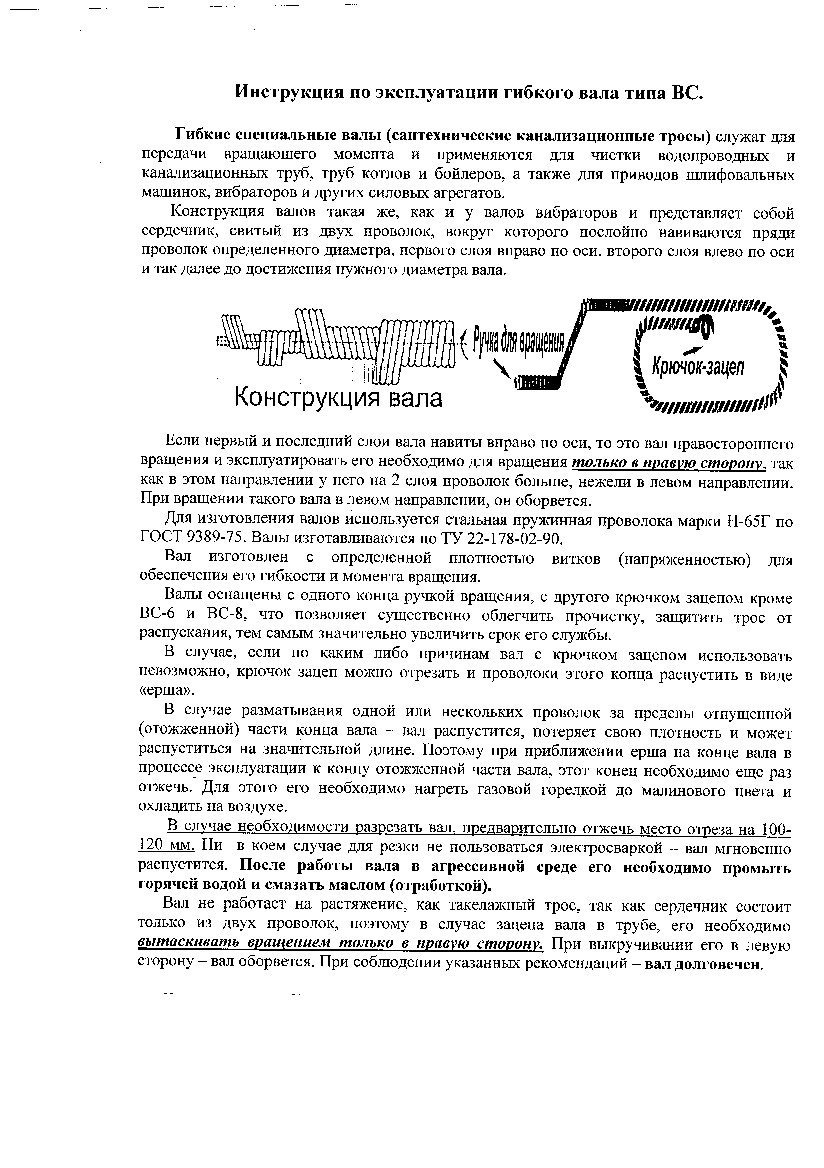 ТЕХНИЧЕСКИЕ ХАРАКТЕРИСТИКИ САНТЕХНИЧЕСКОГО ТРОСА