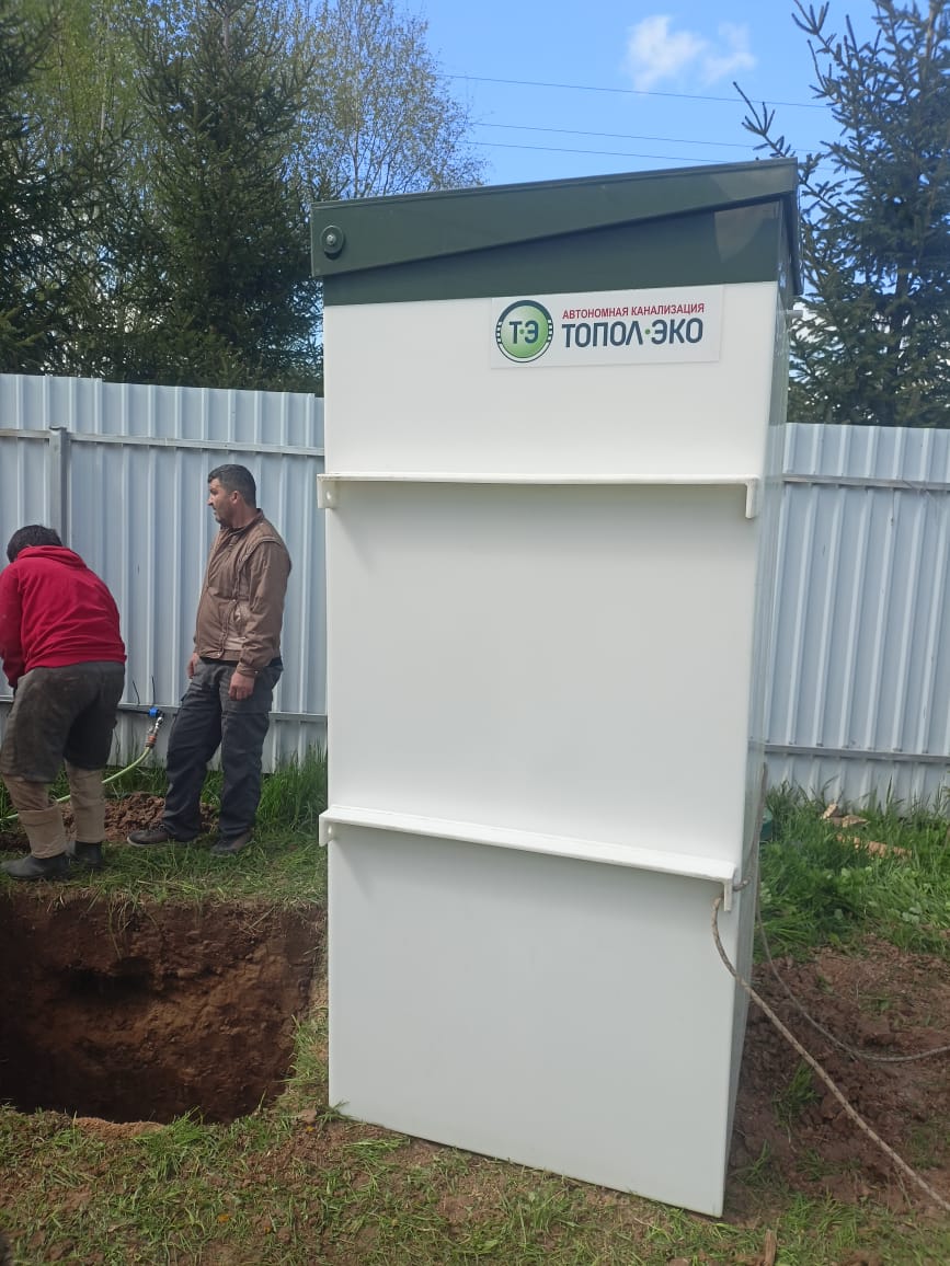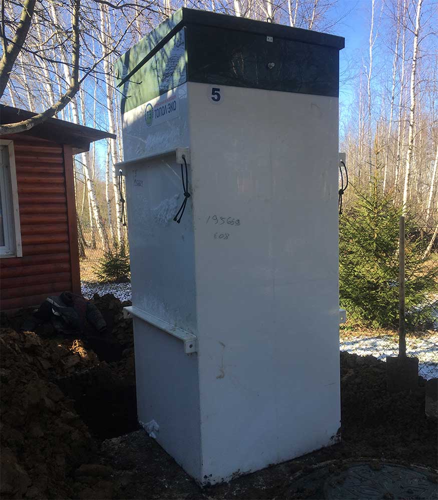 Компания Септик-1 предлагает приобрести септик Топас 5 с двумя компрессорами. ЛОС Топас 5 идеально подходит для дома или дачи на пять человек. Главные технические характеристики очистного сооружения Топас 5: максимальный залповый сброс до 220 л стоков, перерабатывает до 1 м3 стоков в сутки, весит 230 кг, габаритные размеры 1.1x1.2x2.5 м, рассчитан на 5 человек, потребление электроэнергии 1.5 кВт/сутки, 2 компрессора, самотечный отвод очищенных стоков.