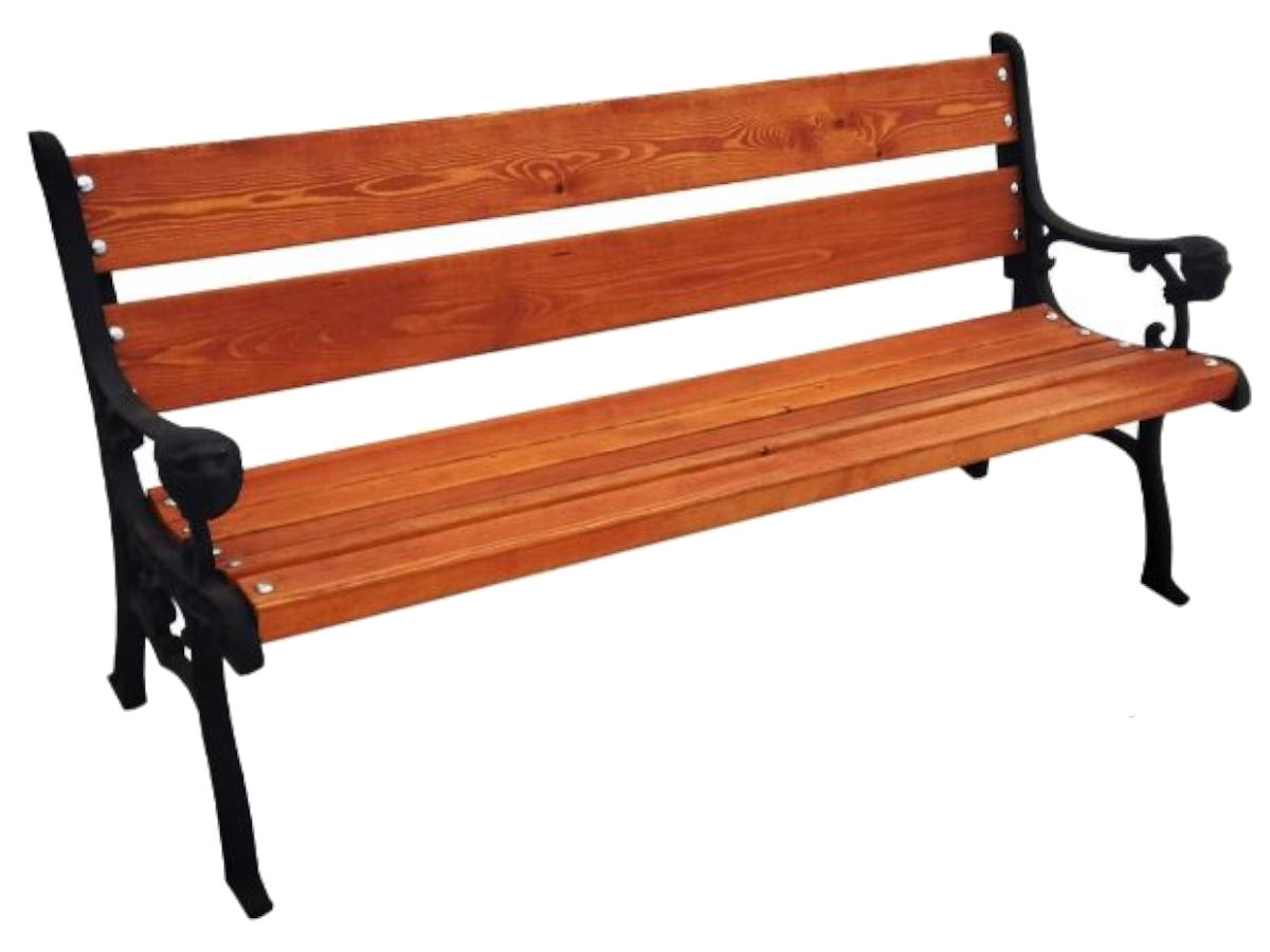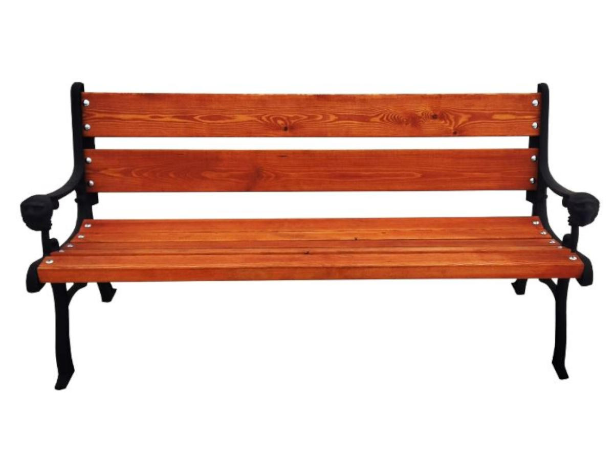 Модель сочетает долговечность с классическими декоративными элементами и может быть выполнена в различных цветовых вариантах: боковины — серый или чёрный, деревянные части — махагон, палисандр или тик. Эта парковая скамейка со спинкой рассчитана на интенсивную эксплуатацию в условиях открытых пространств.