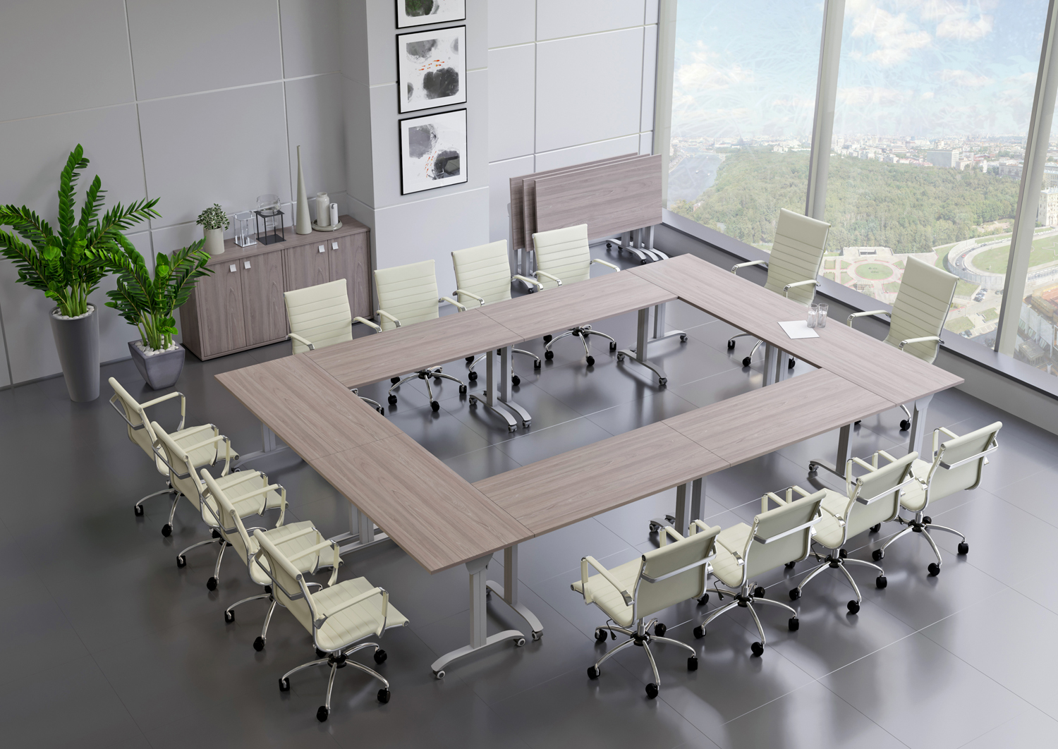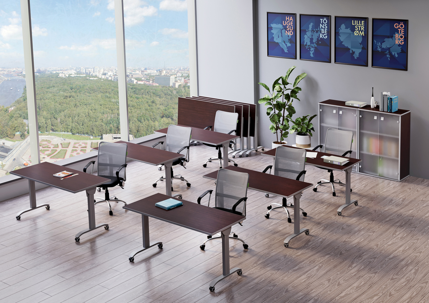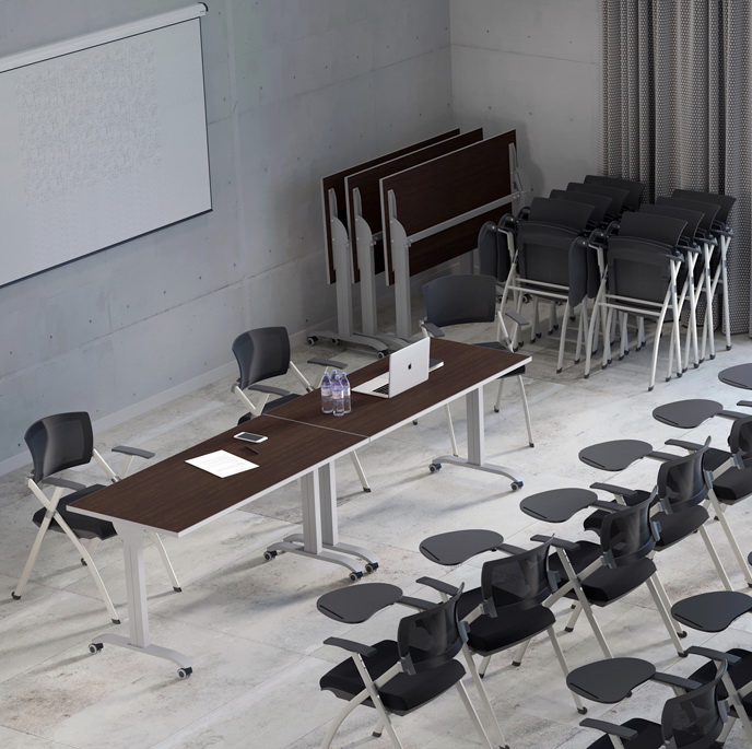 Столы легко перемещаются как в сложенном, так и в рабочем положении. При хранении занимают минимум площади. Столы - трансформеры могут использоваться в учебных аудиториях, для проведений конференций и совещаний