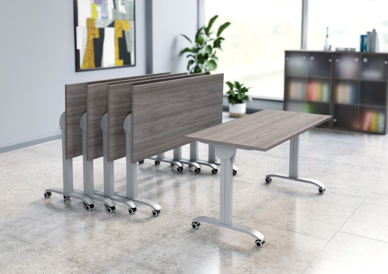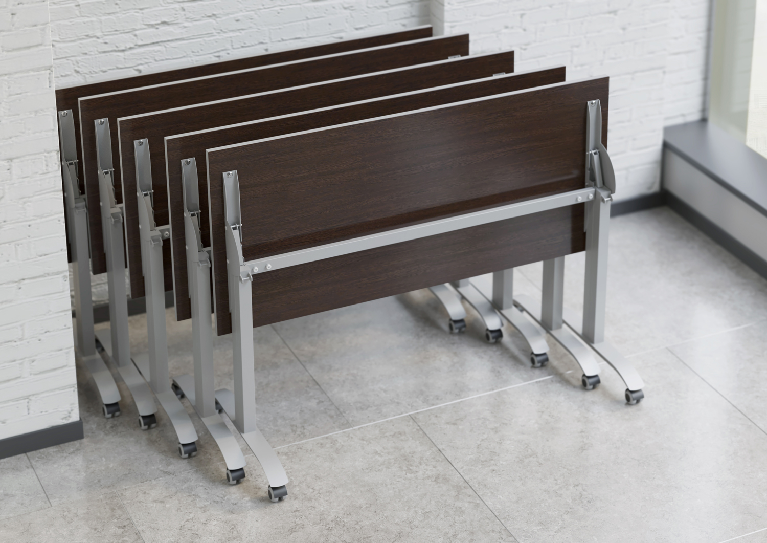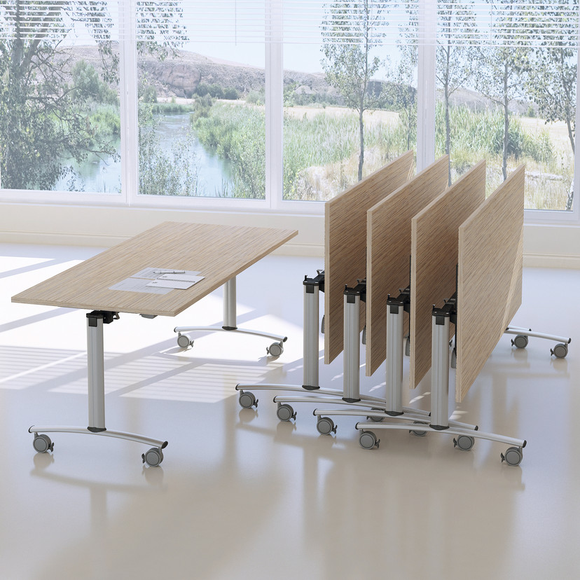 Компания "АС-Навигатор" предлагает мобильные складные столы. Столешницы изготовлены из ЛДСП различных цветов и толщин. Основание - металлический каркас-траснформер, оснащённый механизмом позволяющим складывать столы. Столы устанавливаются на полипропиленовые ролики.